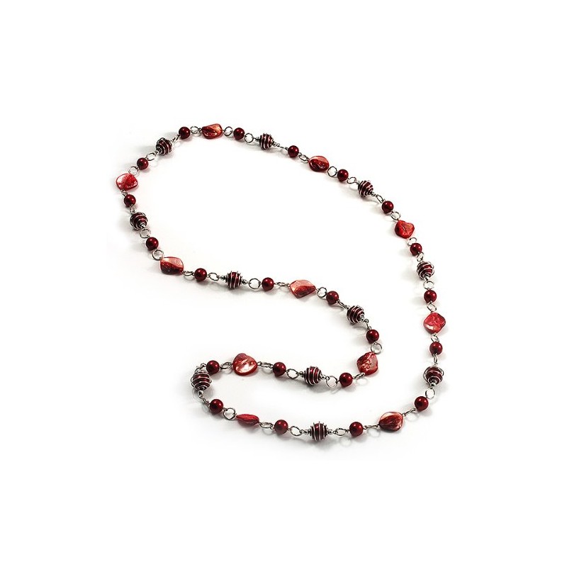 Avalaya Red Shell Composite & Imitation Pearl Bead Silver Tone Wire Long Necklace/ 120cm Long
