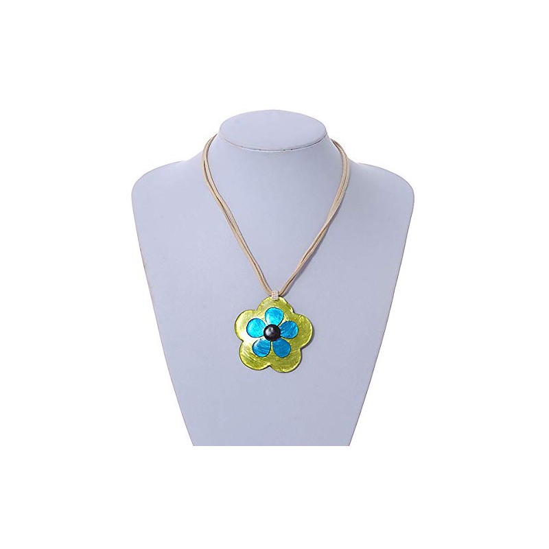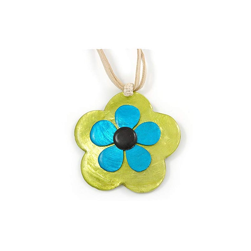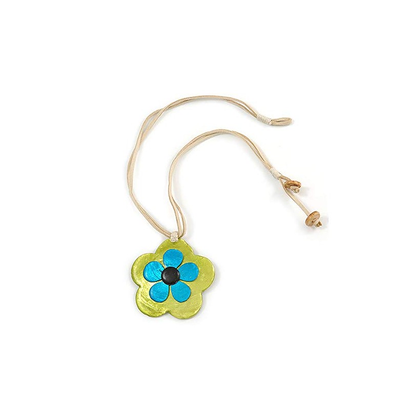 Avalaya Romantic Shell Flower Pendant with Cream Faux Suede Cords (Lime Green, Blue, Black) - 40cm L