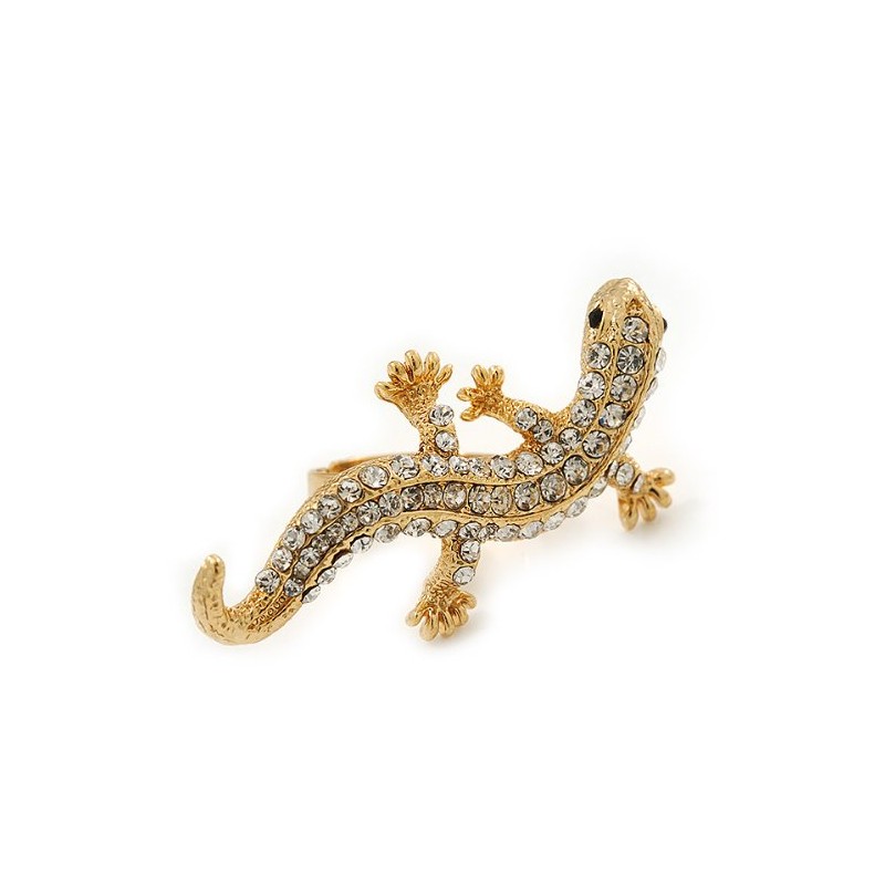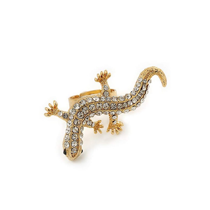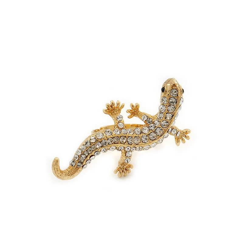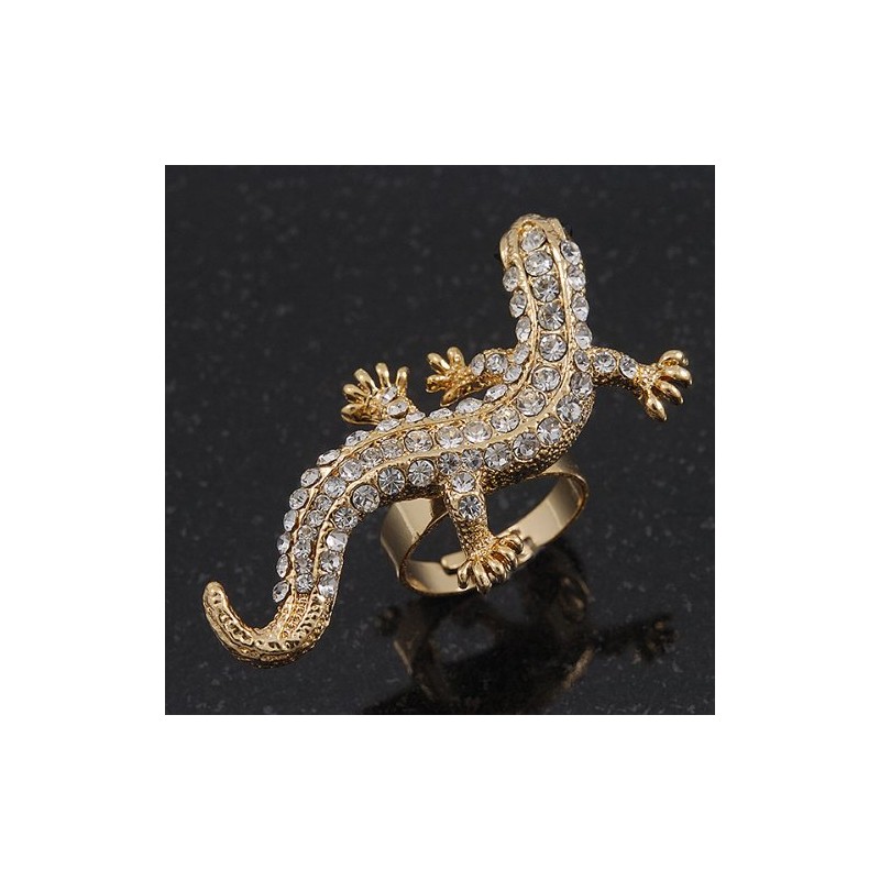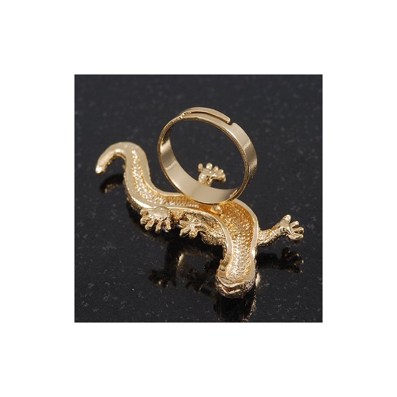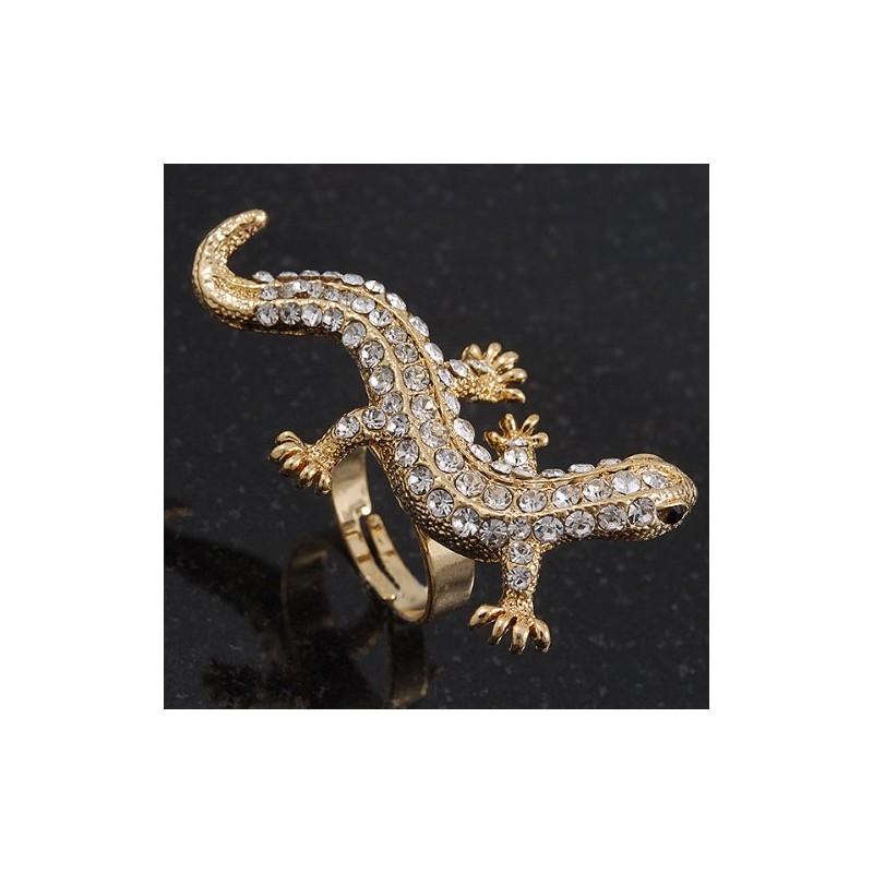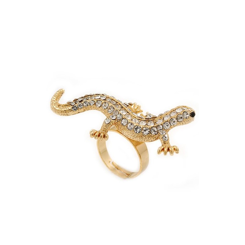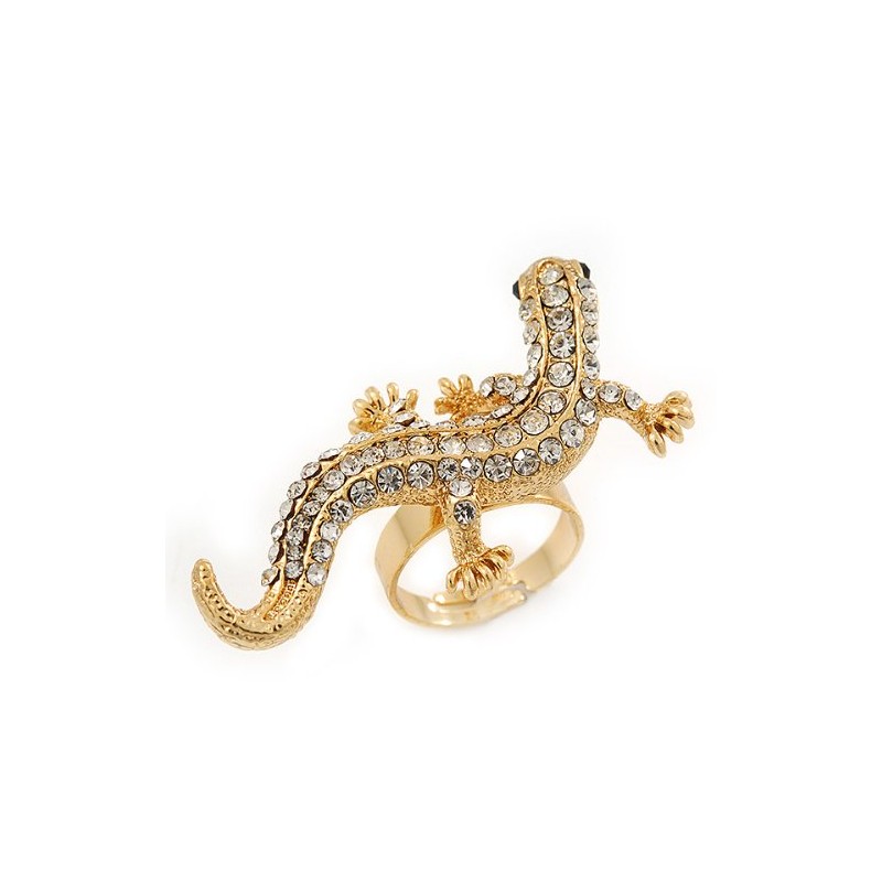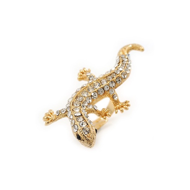 Avalaya Sculptured Crystal Gecko Ring/Gold Plated/Adjustable/Size 7/8/ 4.5cm Length