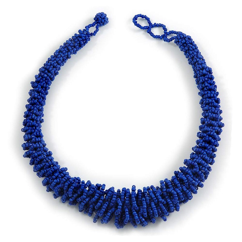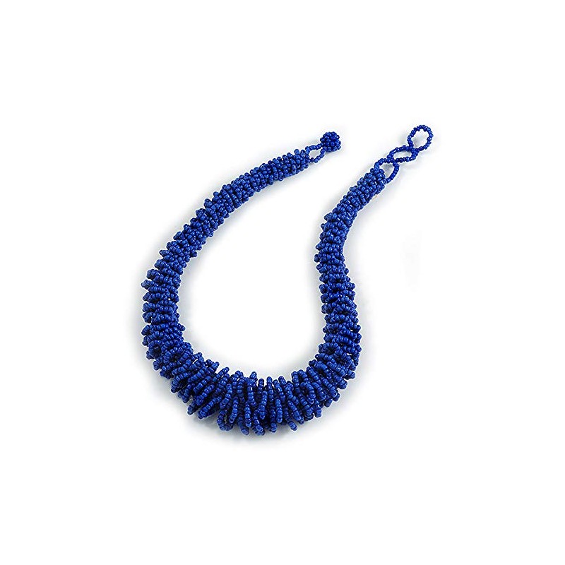Avalaya Statement Chunky Graduated Blue Glass Bead Necklace/ 46cm Long