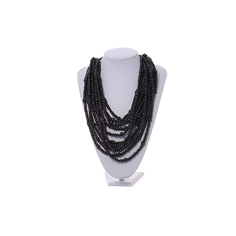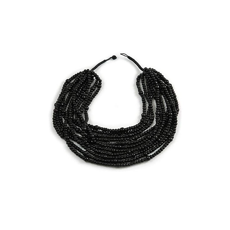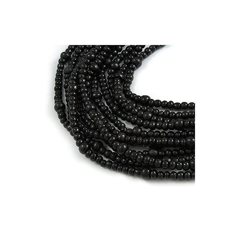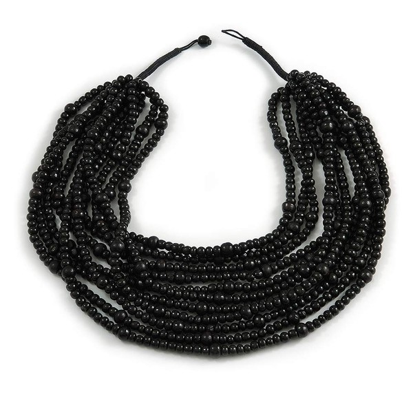 Avalaya Statement Multistrand Layered Bib Style Wood Bead Necklace In Black - 50cm Shortest/ 70cm Longest Strand