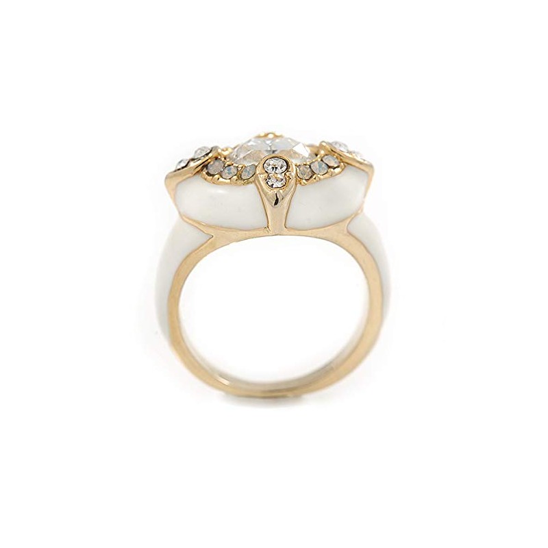 Avalaya Stunning Clear/Milky White Crystal White Enamel Ring - size 7