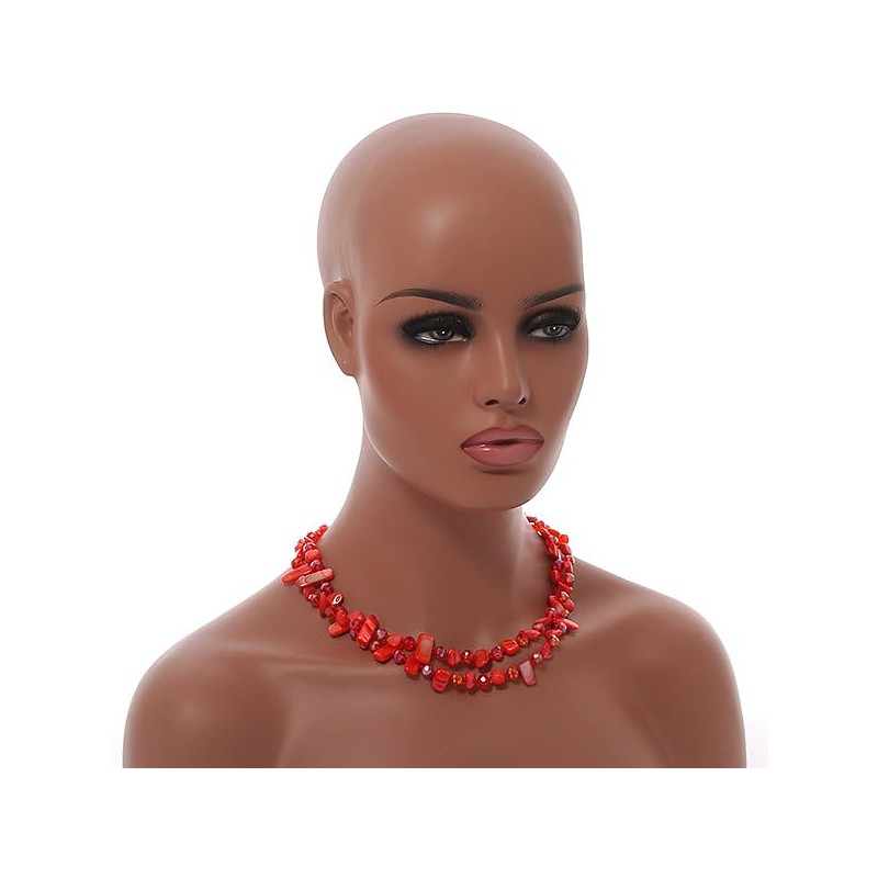 Avalaya Two Row Layered Red Shell Nugget and Glass Crystal Bead Necklace/ 50cm Long