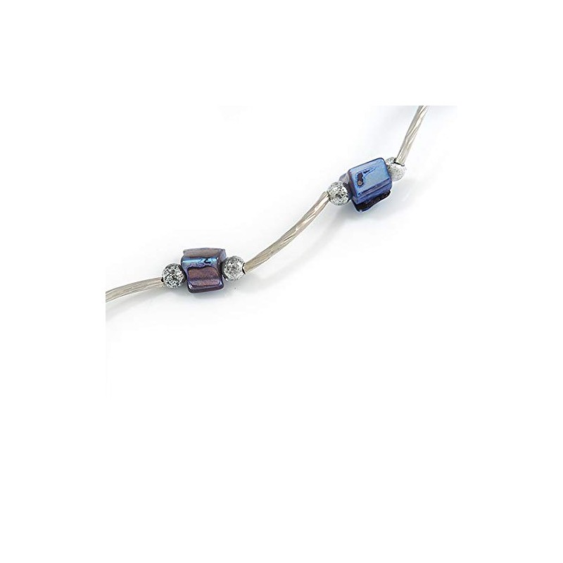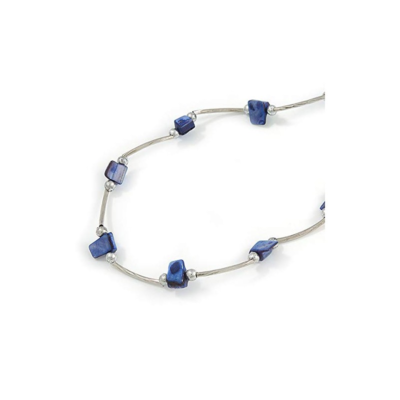Avalaya Violet Blue Shell Nugget Necklace In Silver Tone Metal - 66cm L