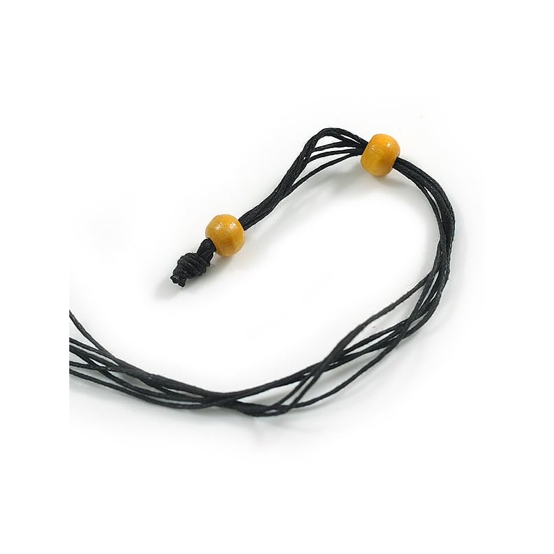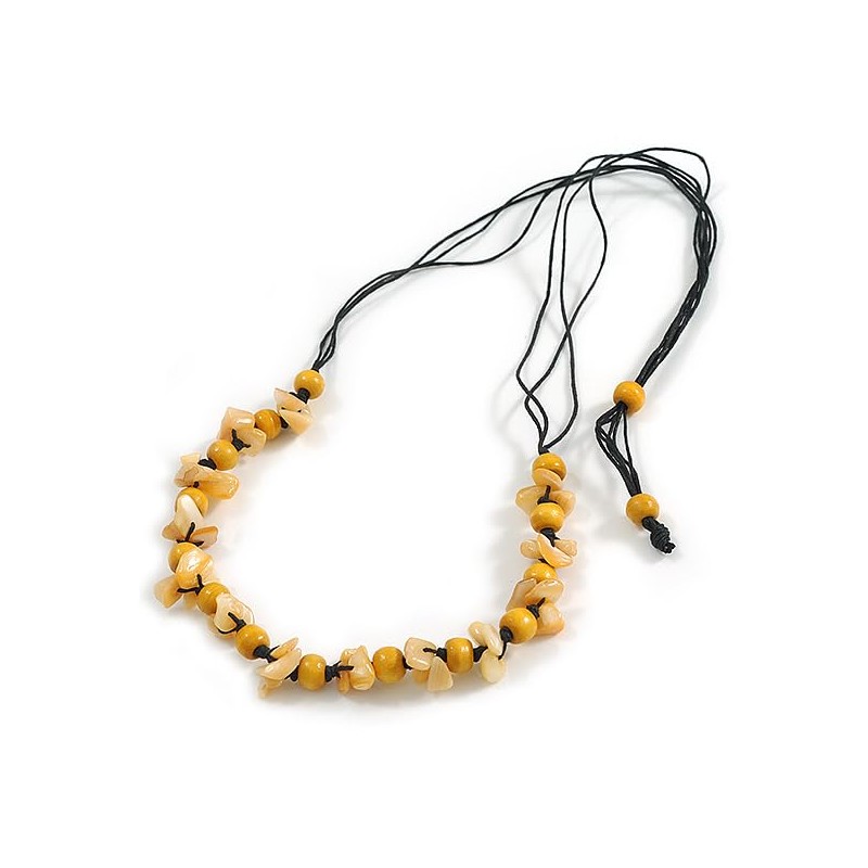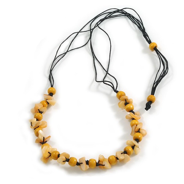 Avalaya Yellow Shell and Wood Beads with Black Cotton Cord Necklace - 80cm L/Adjustable