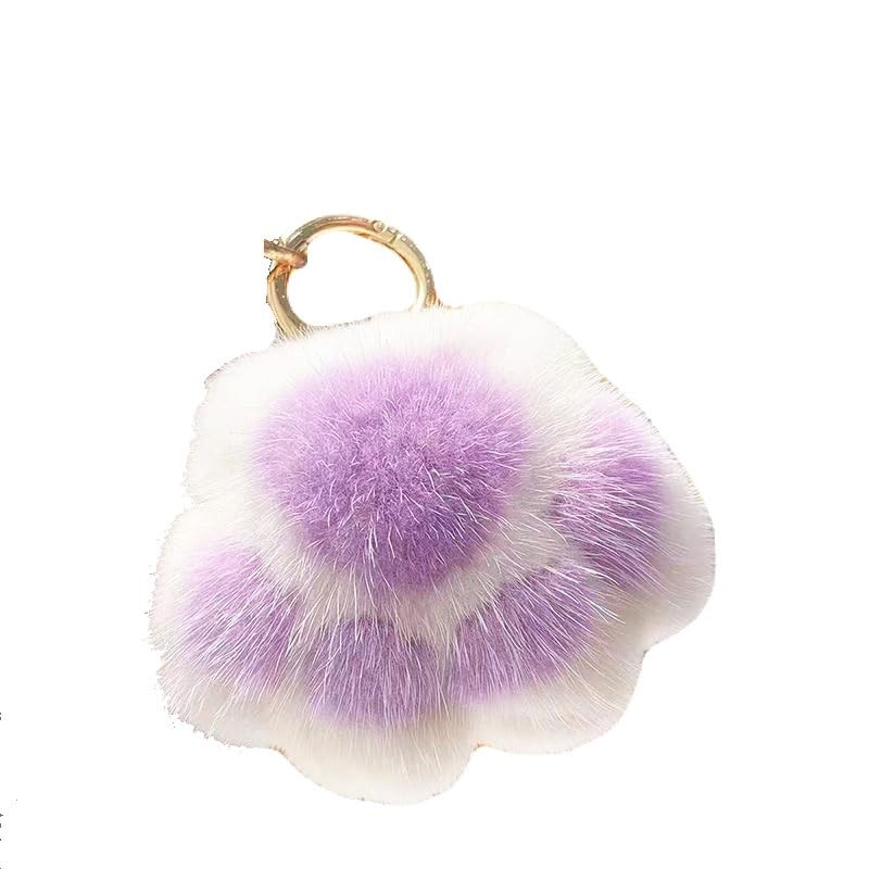 AVANCE Women's Paw Dog Cat Fur Charm Key Ring Cute Fluffy Pom Pom Popular Accessory, white/purple