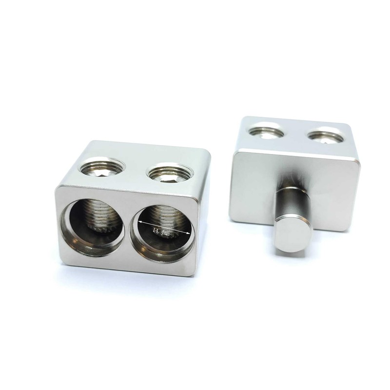 AVANKI Terminal Connector Brass with Nickel Plated Dual 0 to 0 Gauge Amp Input Reducers for 0-2 Gauge Wire 1Pair