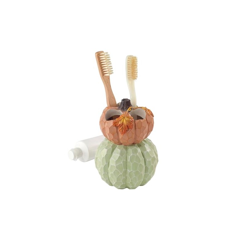 Avanti Linens - Toothbrush Holder, Pumpkin Design Countertop Accessories, Fall Inspired Home Decor (Grateful Patch Collection)