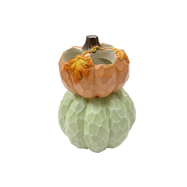 • STYLISH NOT SCARY: Be in the spirit with this figural stack of pumpkins, in orange and green, hand-painted on textured resin to bring out contrasts and shading in the piece.