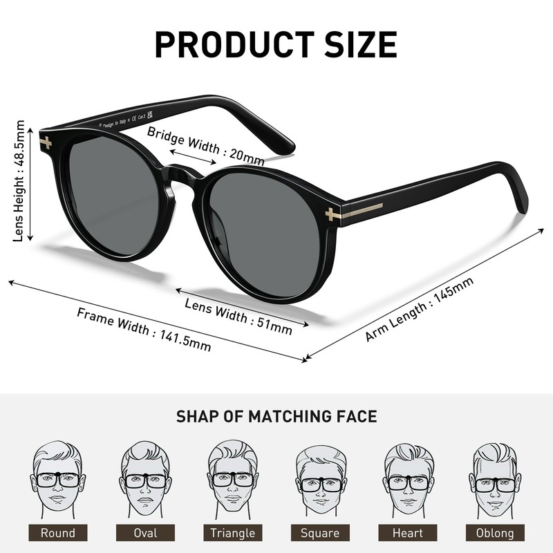 - Combination Design: This new men's polarized sunglasses feature a circular border. The best design is to use a "Metal Cross Link" connection between the frame and legs, pursuing a fashionable design concept with a retro classic style.