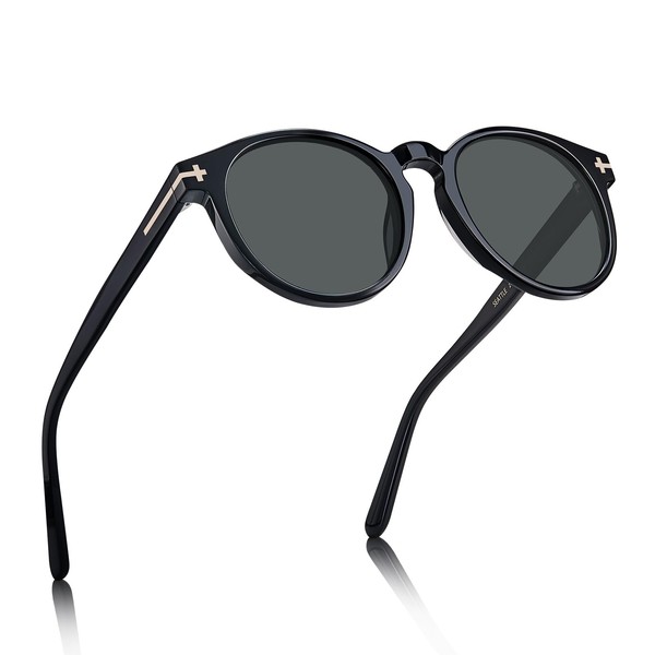 AVAWAY Retro Sunglasses for Men, Round Polarized Glasses UV400 Protective Acetate Frame for Travel Driving