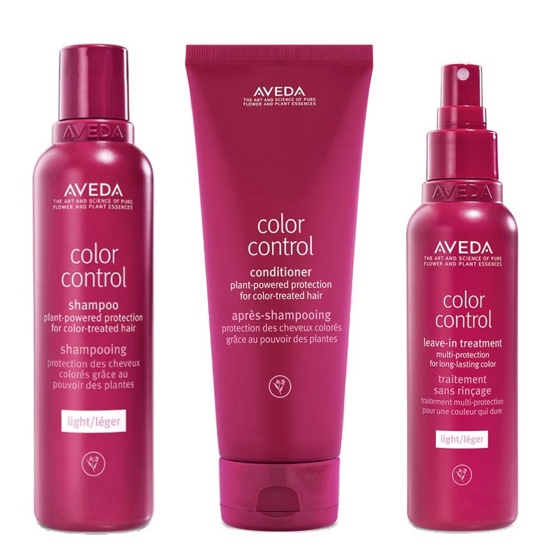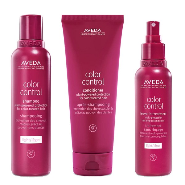 The Aveda Color Control™ Light Trio Bundle w/Leave-In Treatment Light 150ml is the ultimate hair care solution for maintaining vibrant, healthy color-treated hair.