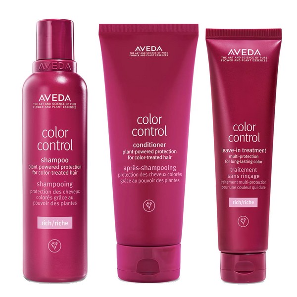 The Aveda Color Control™ Rich Trio Bundle w/Leave-In Crème Treatment Rich 100ml is a comprehensive hair care set designed to maintain and enhance your hair color.