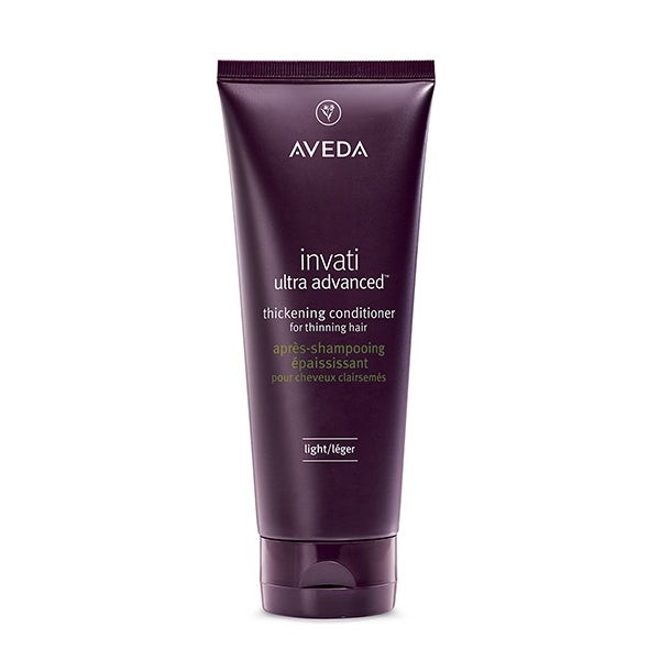 Reduce hair loss by 77%* with our latest advancement for thinning hair: the invati ultra advanced™ 4-step system.This nourishing conditioner for thinning hair is step two of your routine. The formula detangles, thickens and helps strengthen fragile, thinning hair — helping you keep the hair you have, longer. What are the features and benefits of Aveda Invati Ultra Advanced™ Thickening Conditioner Light 200ml? Nourishes, strengthens and instantly thickens fine to medium thinning hair. Conditions and instantly thickens fine to medium hair with a botanical plumping blend, increasing diameter from root to tip. Free from Silicones, Parabens, Mineral Oils & Synthetic Fragrances. Aroma: Soothing Pure-Fume™ aroma with lavender, clary sage, Australian sandalwood, vanilla and other pure plant and flower essences. 96% naturally derived**. Vegan. Leaping Bunny Approved. Dermatologist tested *Reduction in hair loss due to breakage, from repeat grooming test on tresses after use of Invati Ultra Advanced™ 4-step system of shampoo, conditioner, serum and leave-in.**Naturally derived per the ISO 16128 Standard. From plant, non-petroleum mineral sources, and/or water. Who is Aveda Invati Ultra Advanced™ Thickening Conditioner Light 200ml best for? Aveda Invati Ultra Advanced™ Thickening Conditioner Light 200ml is suitable for people with fine to medium thinning hair types and normal to oily scalp types.