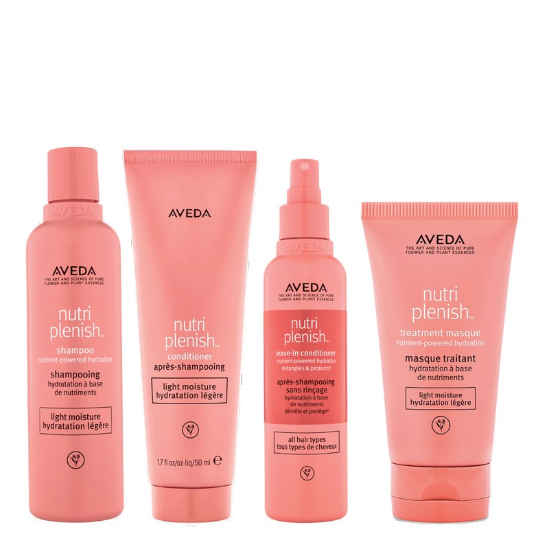 The Aveda Nutriplenish™ Light Moisture Quad Bundle is a comprehensive hair care set designed to provide lightweight hydration and nourishment for your hair.