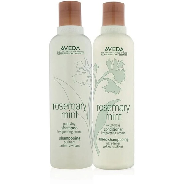 Aveda rosemary mint purifying shampoo and weightlss conditioner 8.5 oz / 8.5 oz Duo Cleanses and adds body to fine to normal hair. The invigorating aroma naturally energizes your senses. Conditions fine hair and adds weightless body and shine while helping prevent tangles and static. Certified organic rosemary and peppermint cool and revitalize your scalp. |