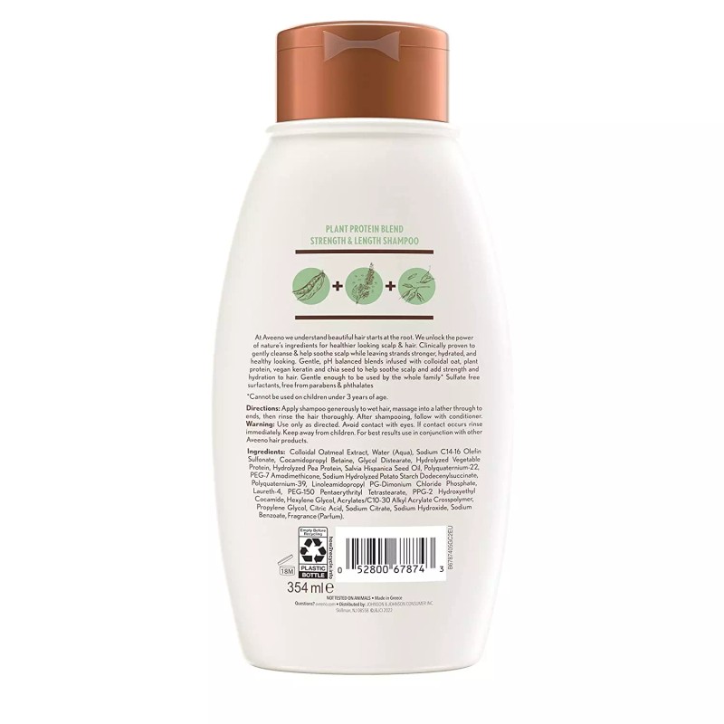 - STRENGTH AND LENGTH: Keep hair growing strong with Aveeno Plant Protein Blend Shampoo, designed to nourish and strengthen strands, soften hair and combat intense frizz