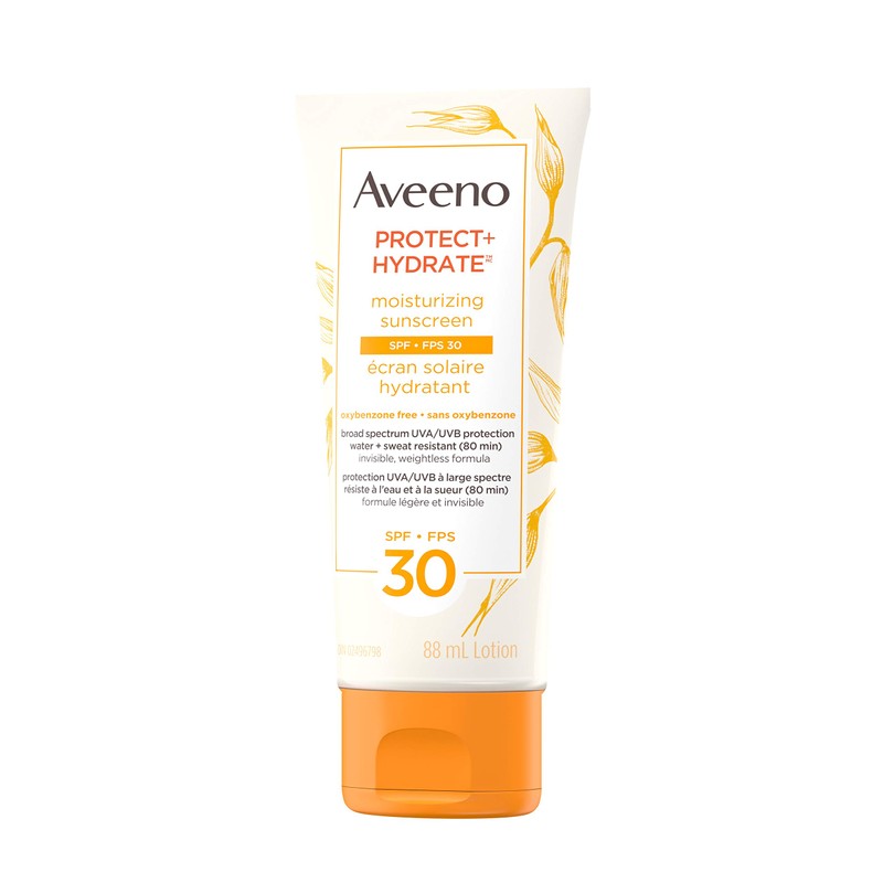 - Aveeno protect + hydrate moisturizing face and body sunscreen SPF 30, 88 ml, provides effective sun protection while hydrating the skin