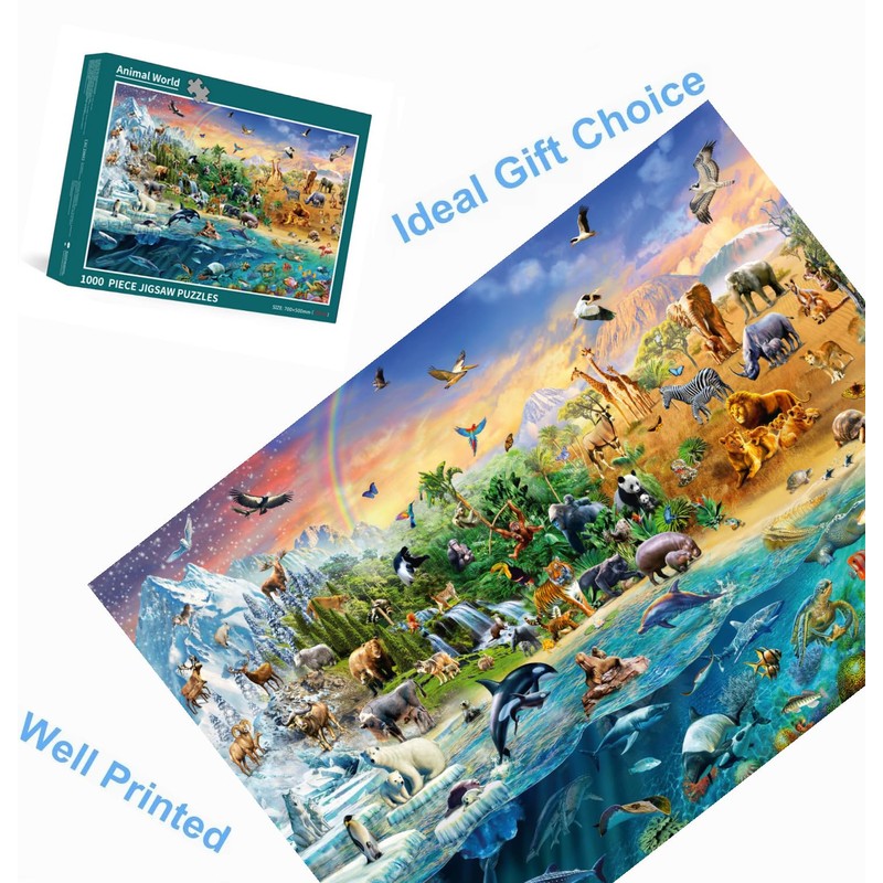 • 1000 pieces jigsaw puzzles: The dividing lines are clear, and there is no odor. Thrill the entire family and provide hours of fun and entertainment piecing this incredible jigsaw puzzle together. Animal World Puzzle is one of the adults games toy to enjoy recreational time with family & friends.