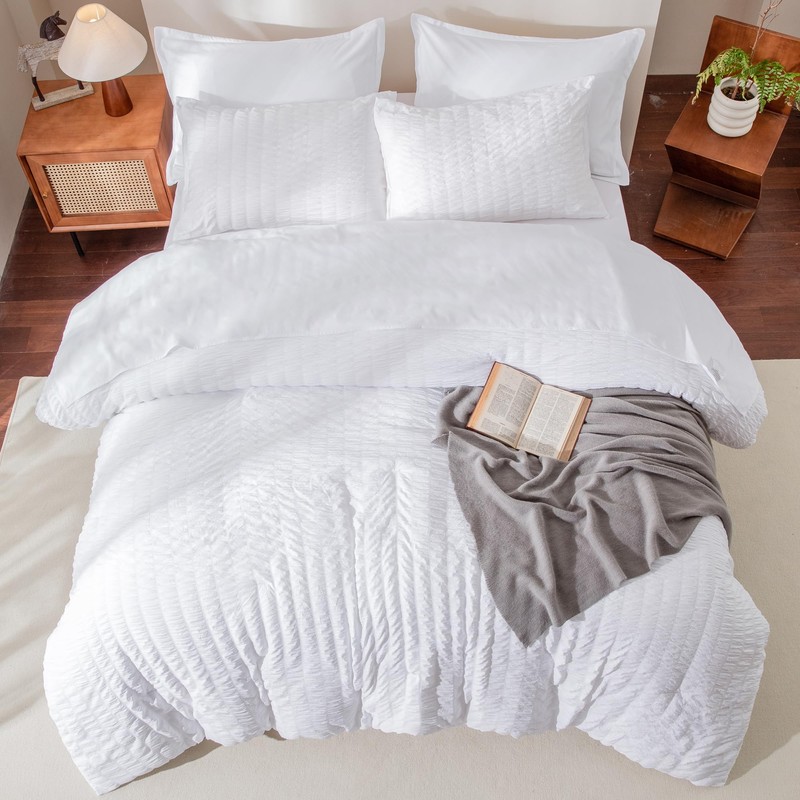 • Chic Seersucker Design: Are you tired of smooth, plain comforter sets without any design? This delicate and beautiful seersucker texture is simple and fashionable, and you will fall in love with the pattern at first sight.