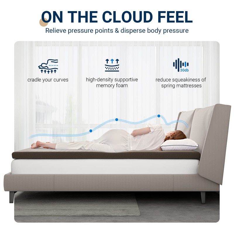 - ❤Cloud Sleeping Feel: Made with high-density supportive memory foam, the queen mattress topper memory foam will cradle your curves to relieve pressure points and disperse body pressure. The no-sink support foams of the 2 inch memory foam mattress topper will conform to your body and keep your spine in a nautral position just like sleeping on a cloud. Another the soft cooling gel mattress topper queen could help to reduce squeakiness college spring mattresses.
