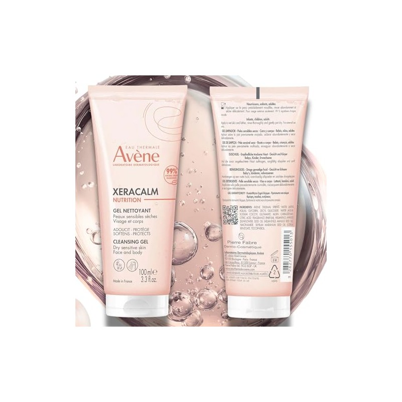 Avene Xeracalm Nutrition Kit - Crema Hidratante Facial 200 ml, Leche Hidratante Xeracalm Gel Limpiador Facial 100ml Para Piel Seca 2 Piezas
