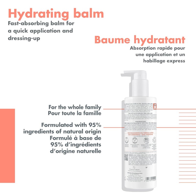 Avene Thermal Spring Water (Avene Aqua), Glycerin, Carthamus Tinctorius (Safflower) Seed Oil (Carthamus Tinctorius Seed Oil), Pentaerythrityl Tetracaprylate/Tetracaprate, Polyglyceryl-2 Dipolyhydroxystearate, Isopropyl Palmitate, Niacinamide, Behenyl Alcohol, Benzoic Acid, Caprylyl Glycol, Helianthus Annuus (Sunflower) Seed Oil (Helianthus Annuus Seed Oil), Hydroxyethylcellulose, Lauryl Glucoside, Silybum Marianum Seed Oil, Sodium Citrate, Sodium Lauryl Glucose Carboxylate, Sodium Stearoyl Glutamate, Sorbic Acid, Tocopherol, Water (Aqua), Xanthan Gum