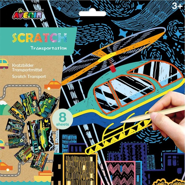 Avenir 6301681 Scratch Kit with a Multi Transport Theme | Arts and Crafts for Kids Ages 3+, Multicoloured