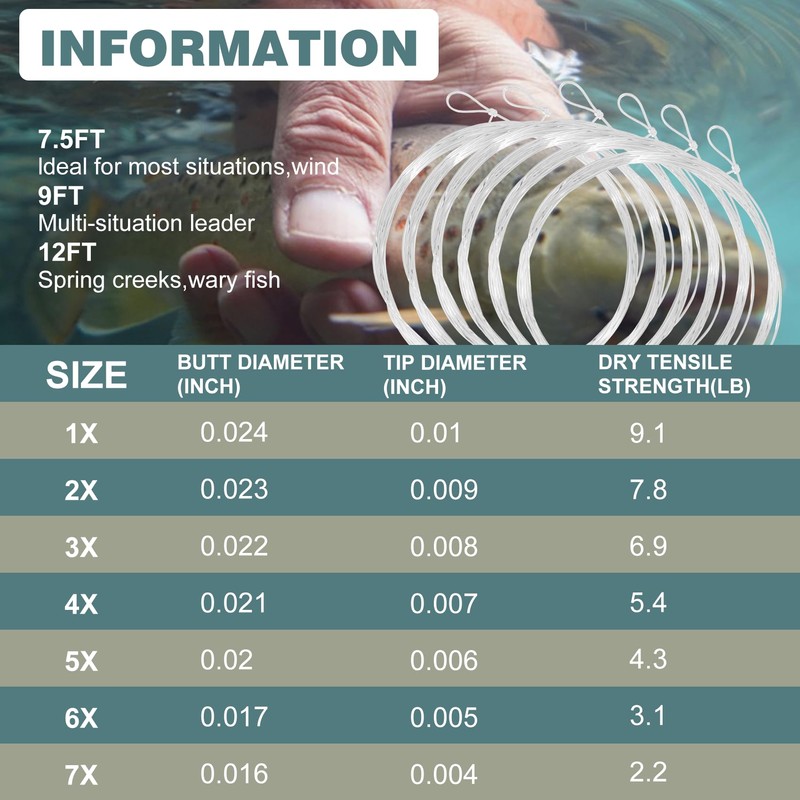 - Fly Fishing Leader Fly Line 7.5FT 9.0FT 12FT:Strength and Diameter Ratio: Optimize the strength-to-diameter ratio to make the leaders stronger without increasing visibility.