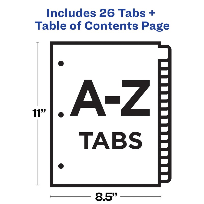 AVERY Avery A-Z Tab Dividers for 3 Ring Binder, Customizable Table of Contents, Multicolor, 1 Set (11125)