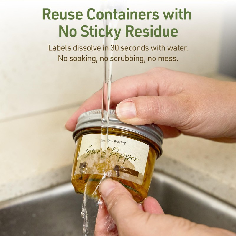 • Choose an eco-friendly solution with dissolvable labels that break down in water, making it easy to reuse containers while reducing waste in landfills
