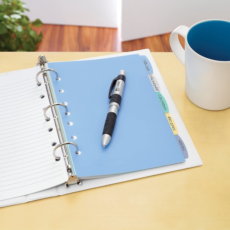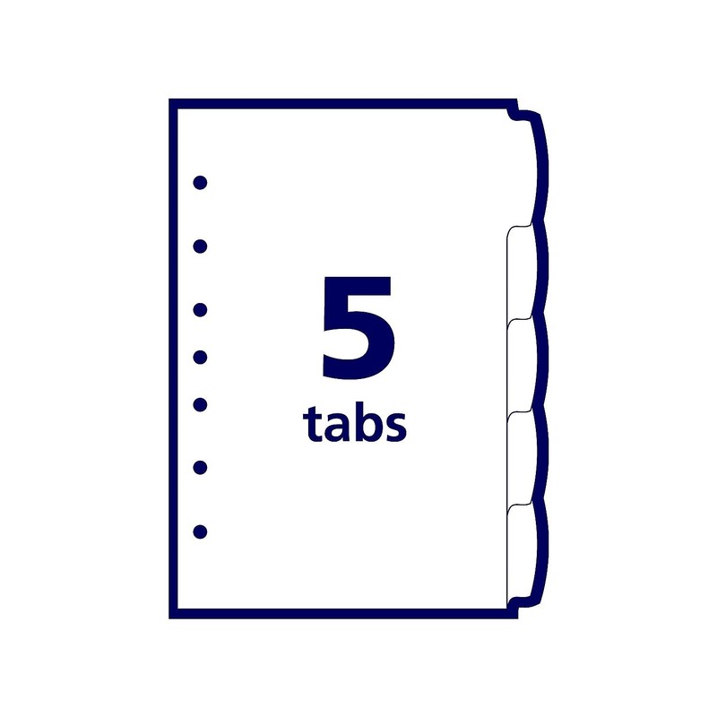 AVERY Durable Plastic Write-On Dividers, 5-1/2" x 8-1/2", 5 tabs, Multi-Colour, 1 Set, (16180)