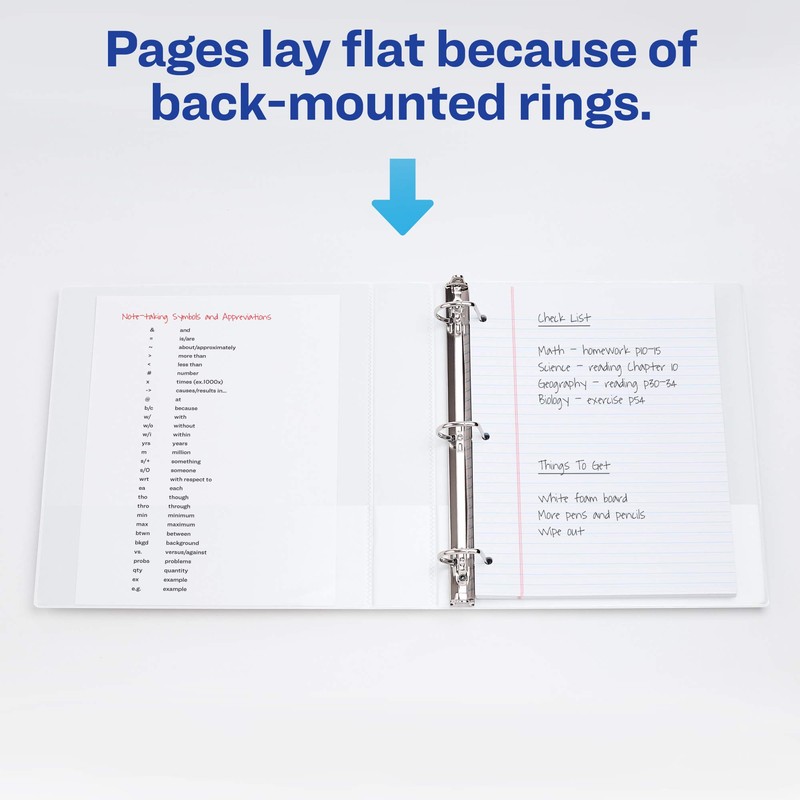 - Important schoolwork and documents stay flat like they’re supposed to because slant rings are mounted on the rear binder panel instead of on the spine