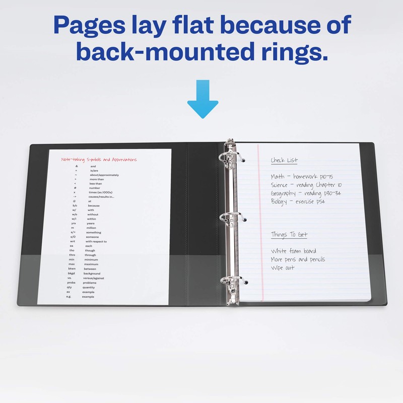 - Important schoolwork and documents stay flat like they're supposed to because slant rings are mounted on the rear binder panel instead of on the spine
