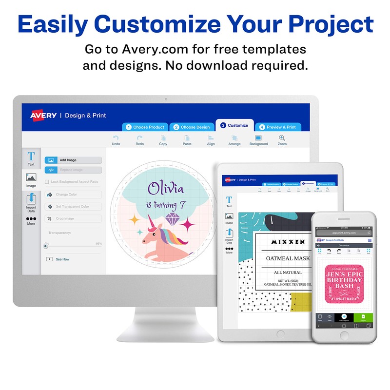 - Customize mailing address labels by hand, with your own text and graphics, or use the free templates, designs and easy mail merge feature on the Avery website