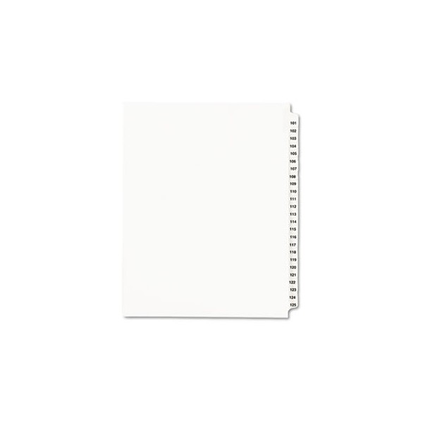 Avery Preprinted Legal Exhibit Side Tab Index Dividers, Avery Style, 25-Tab, 101 to 125, 11 x 8.5, White, 1 Set, (1334)