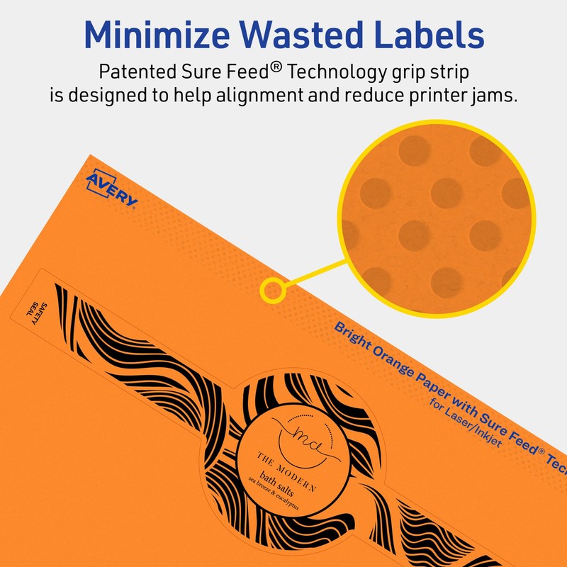 Avery Printable Cigar Labels with Sure Feed Technology, 2-3/8" x 8", Bright Orange Labels, Laser/Inkjet, 240 Total, Great for Soap Labels and Jar Labels