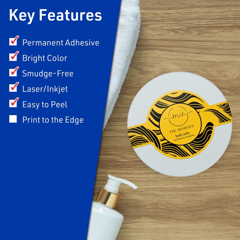 Avery Printable Cigar Labels with Sure Feed Technology, 2-3/8" x 8", Bright Yellow Labels, Laser/Inkjet, 120 Total, Great for Soap Labels and Jar Labels