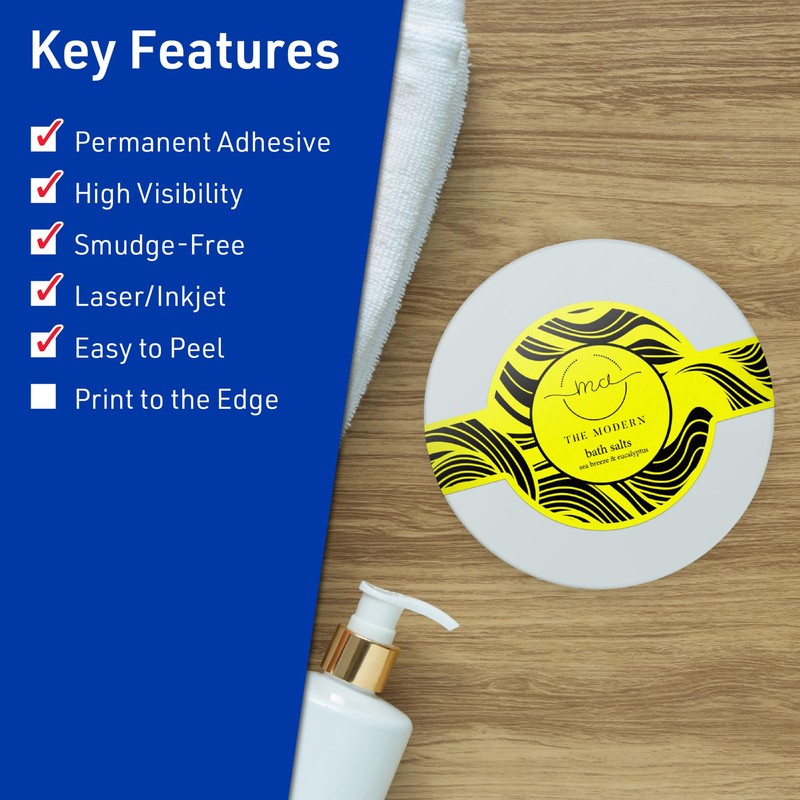 Avery Printable Cigar Labels with Sure Feed Technology, 2-3/8" x 8", Neon Yellow Labels, Laser/Inkjet, 30 Total, Great for Soap Labels and Jar Labels