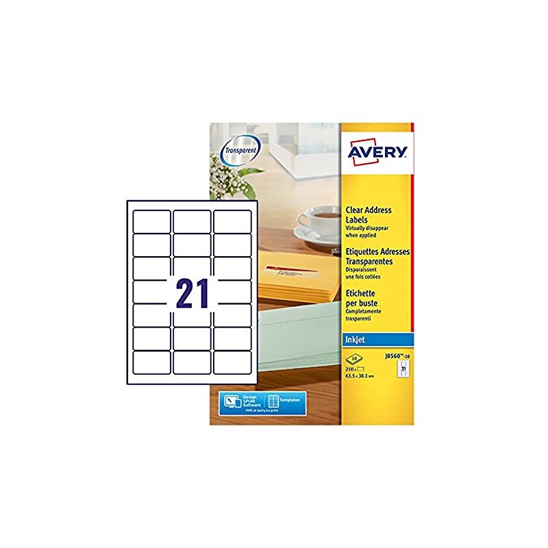 Avery Printable, Customisable Address Mailing Labels, Inkjet Printers, 21 Labels per A4 Sheet, 210 Labels, Quickdry (J8560)