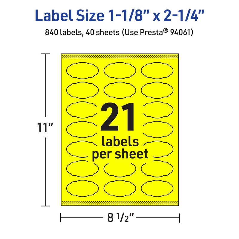 Avery Printable Oval Scalloped Labels with Sure Feed Technology, 1-1/8" x 2-1/4", Neon Yellow Labels, Print-to-The-Edge, Laser/Inkjet, 840 Total, Great for Candle Labels and Jar Labels