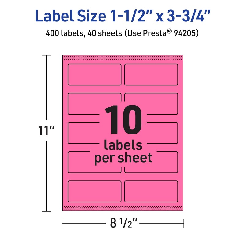 - Elevate your branding with Avery printable colored labels! Create your own customizable labels with Avery template Presta 94205