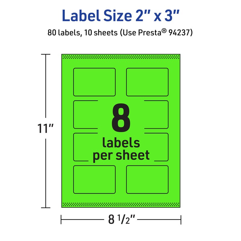 Avery Printable Rectangle Labels with Sure Feed Technology, 2" x 3", Neon Green Labels, Print-to-The-Edge, Laser/Inkjet, 80 Total, Great for Mailing Labels and Candle Labels