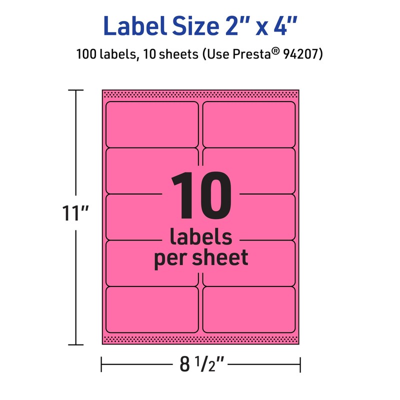 Avery Printable Rectangle Labels with Sure Feed Technology, 2" x 4", Bright Pink Labels, Laser/Inkjet, 100 Total, Great for Mailing Labels and Candle Labels