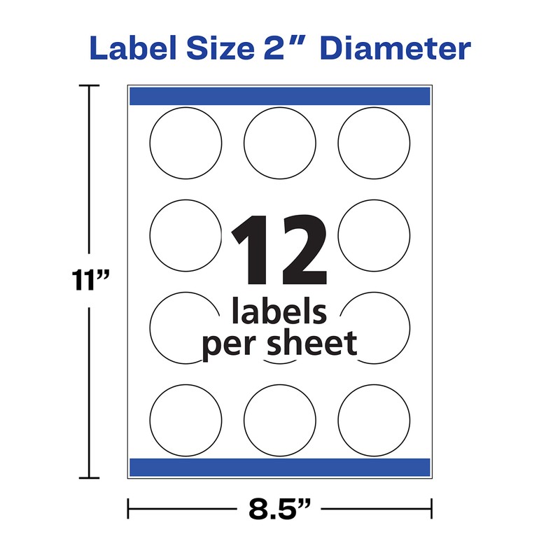 Avery Printable Round Labels with Sure Feed, 2" Diameter, Glossy White, 60 Customizable Labels (22817)