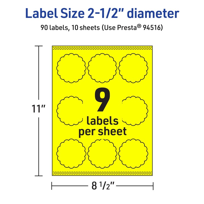 • Elevate your branding with Avery printable colored labels! Create your own customizable labels with Avery template Presta 94516