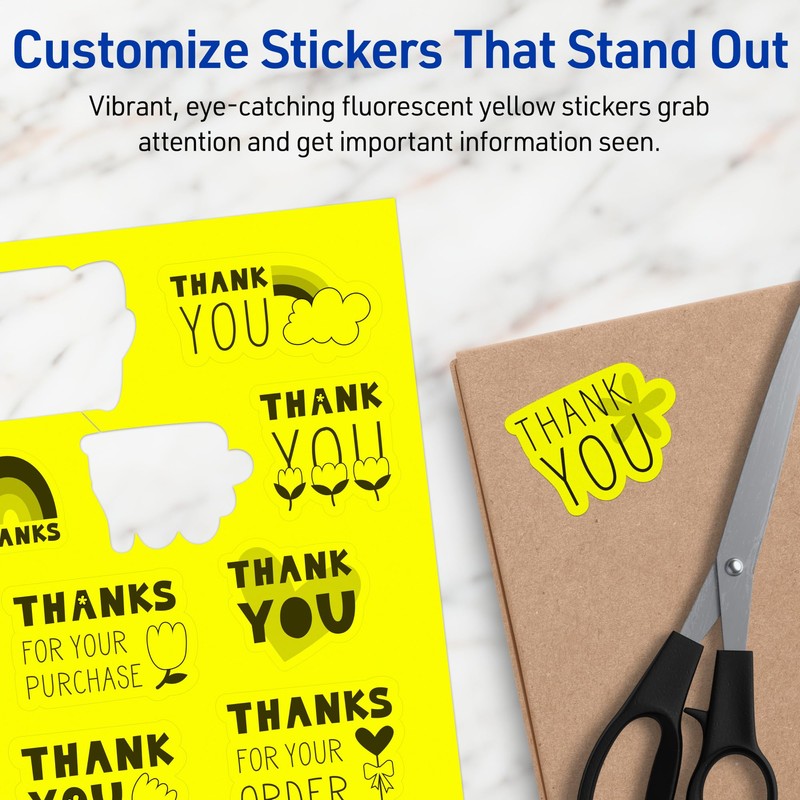 Avery Printable Sticker Paper, 8-1/2" x 11", Full-Sheet Labels, Neon Yellow Labels, Laser/Inkjet, 40 Total, Great for Packaging Labels and Stickers