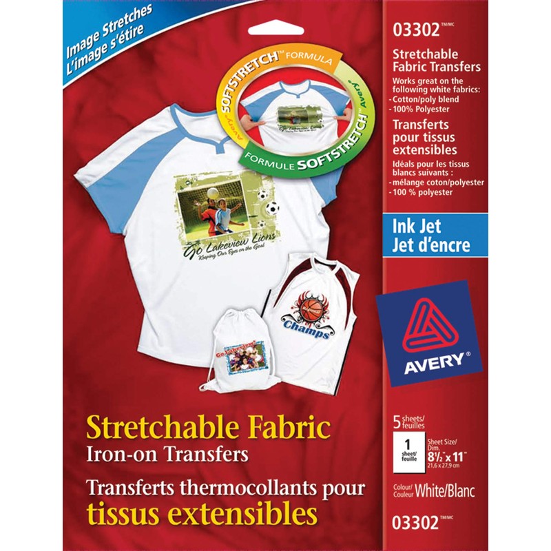Avery Stretchable T-Shirt Transfers for Inkjet Printers, White, 5 Pack (3302)