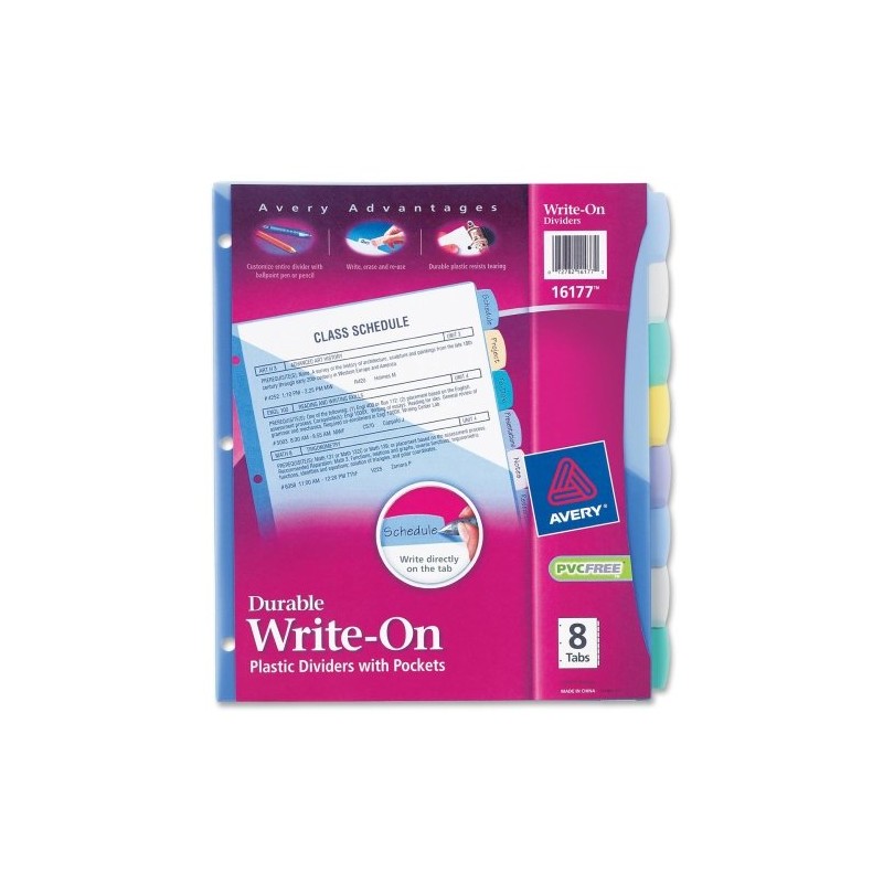 Avery Write & Erase Durable Plastic Dividers With Pockets-8 Multicolor Tabs, 1 Set
