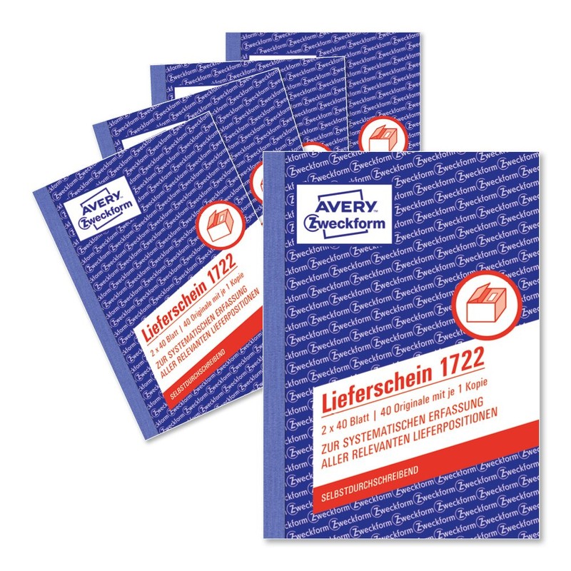 Avery Zweckform 1722 Lieferschein, DIN A6, Copying, 2 x 40 Pages/Pack of 5, White, Yellow
